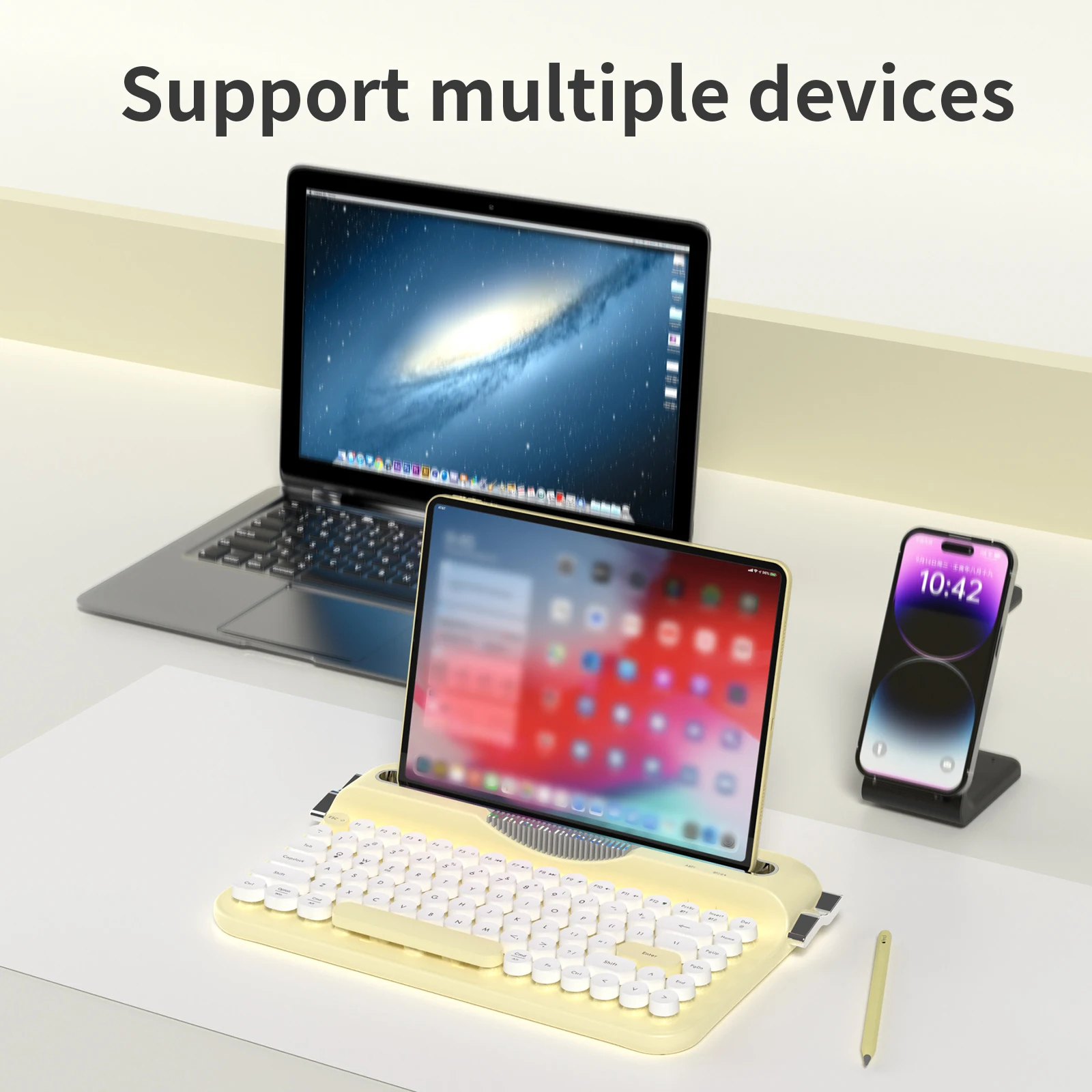 AJAZZ AF84 Wireless BT Portable Keyboard - Retro Punk Typewriter Film Keyboard - Wireless BT Dual Mode Office Keyboard - Cute