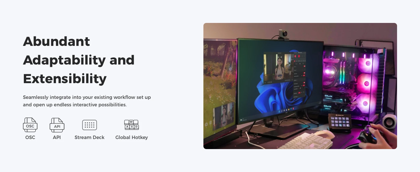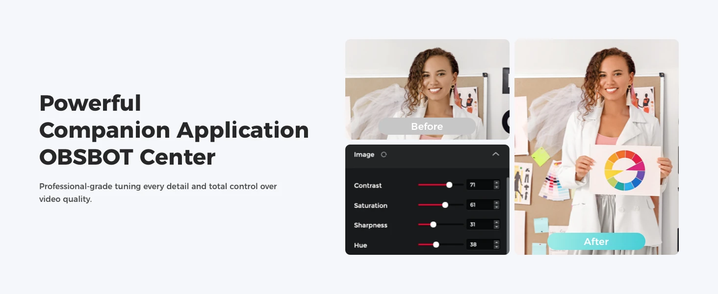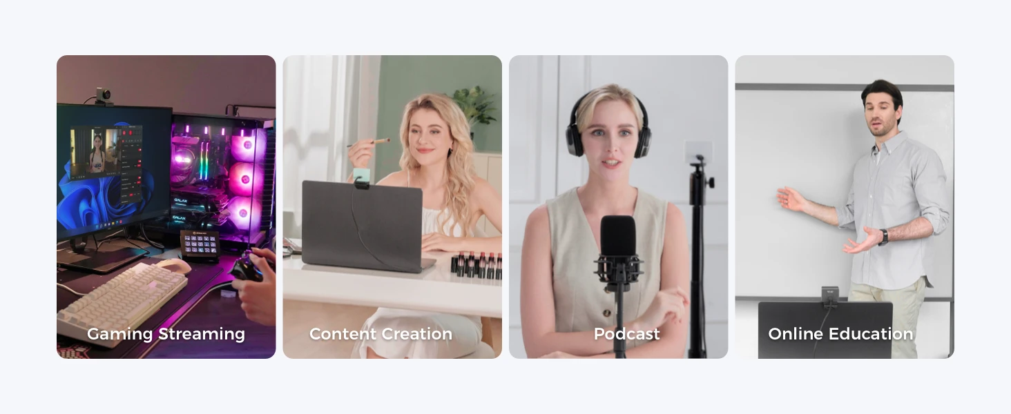 Plug and Play Simplicity: With just a single USB-C connection, our webcam for PC turns on and is immediately ready for use. For more personalised needs, the OBSBOT Center software offers deep feature exploration.