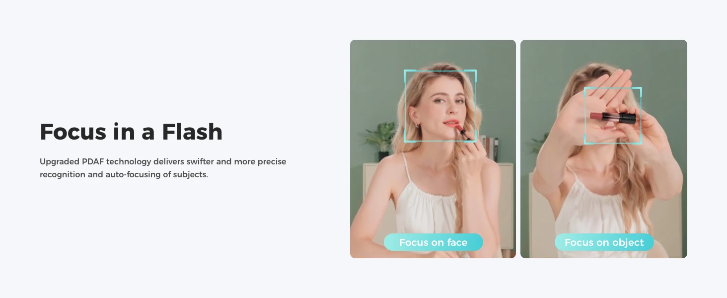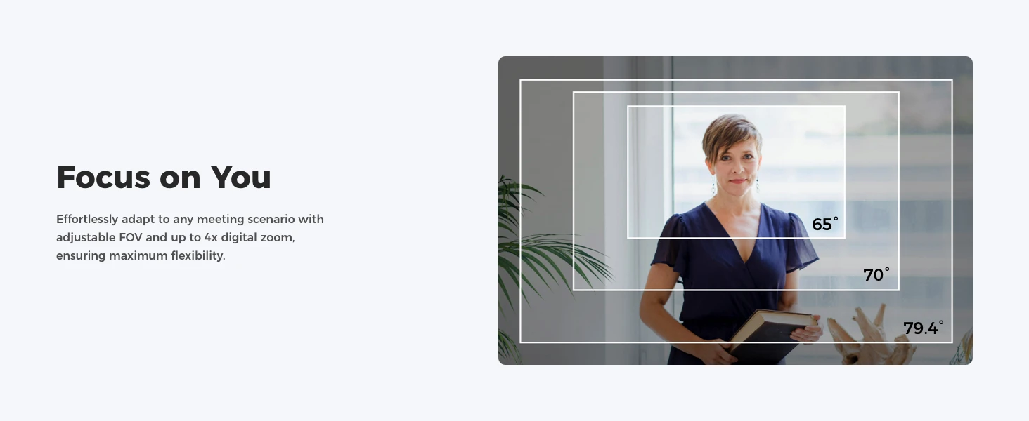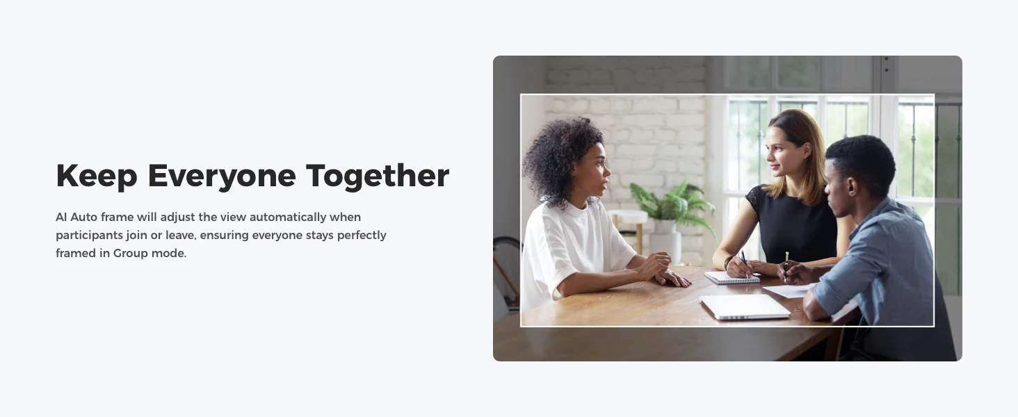 AI Framing and Auto Focus: Whether you're alone or with a group of people, web cam's AI algorithm dynamically adjusts the composition and focus of each frame, guaranteeing you're always in the spotlight.