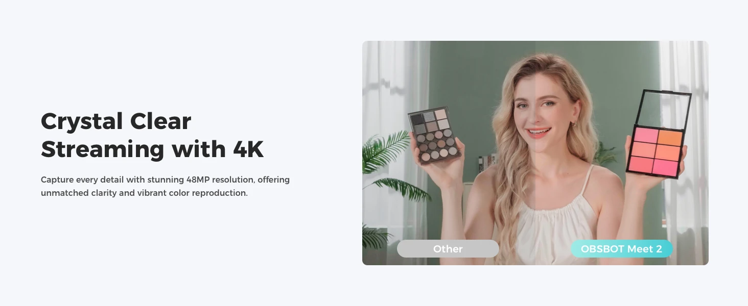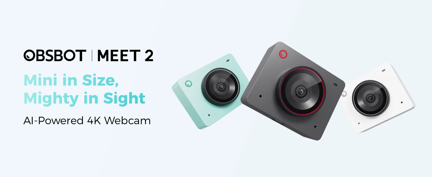 Mini in Size, Mighty in Sight: The upgraded OBSBOT Meet 2 webcam 4K combines AI features with a sleek compact design. Enjoy a wide selection of colors to personalize your setup, and experience improved performance without the high cost.