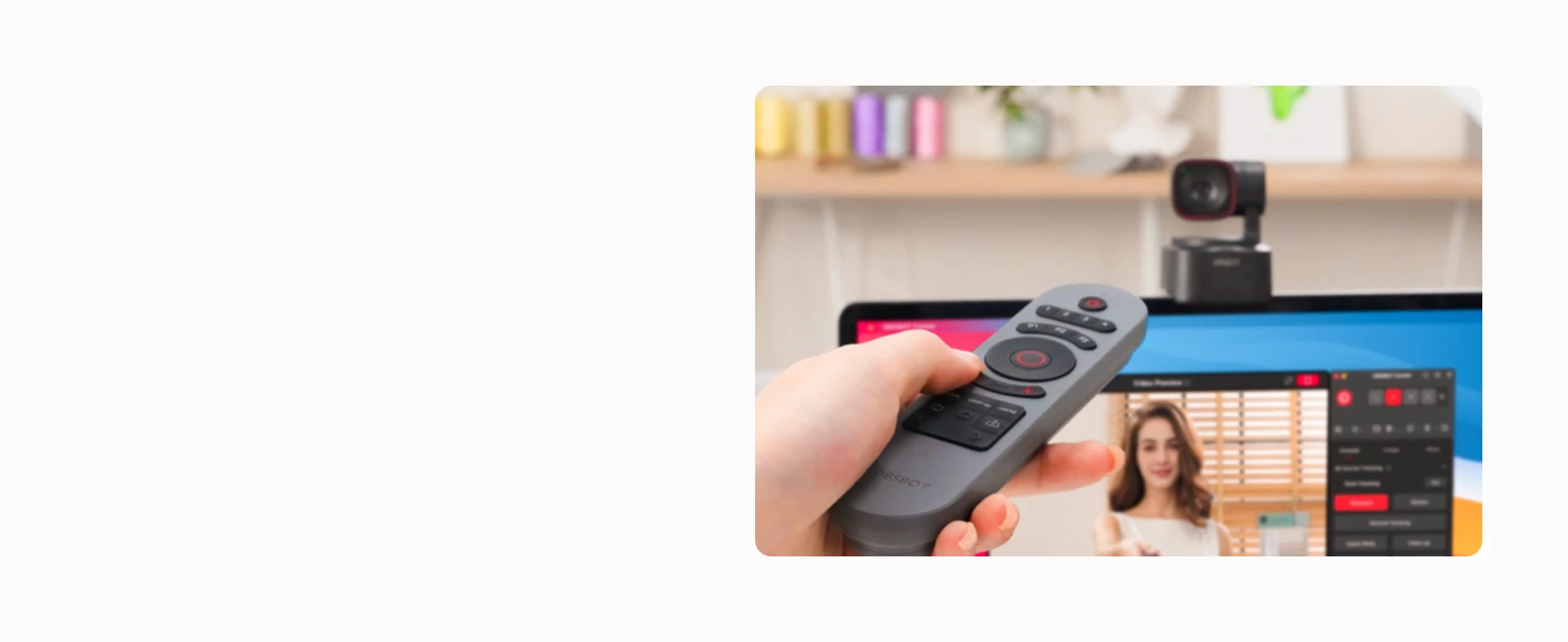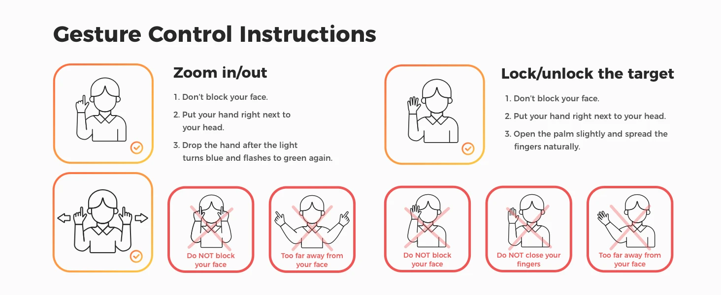 Dynamic Gesture Control: Simply face the web cam, make a gesture to lock the portrait tracking target or easily control the zoom.