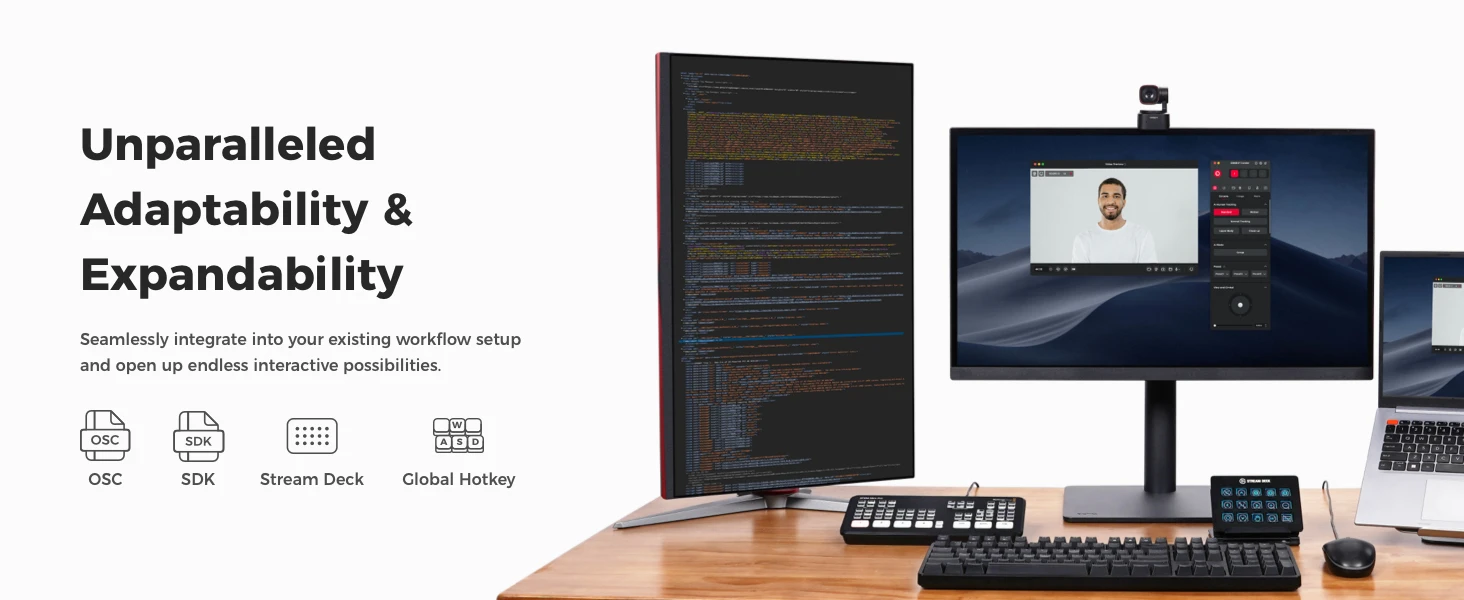 Apps for Novice and Experienced: Get started in seconds with no app required,just plug it in. For power users, unlock our computer camera advanced customization through SDK, OSC, and Global Hotkey support.